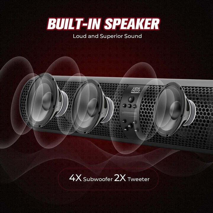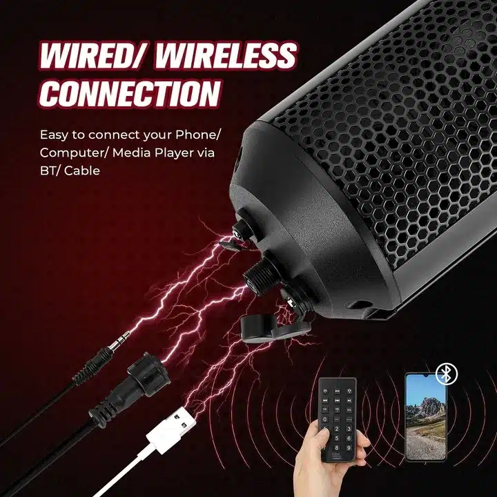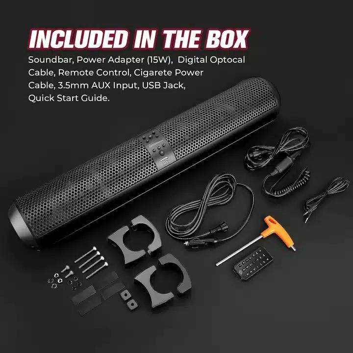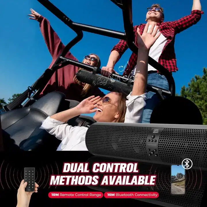 6 Speaker UTV Bluetooth Sound Bar, 28 Inches Wide, IPX5 Waterproof, Bluetooth, Adapt to 1.56″-2.25″ Roll Bar