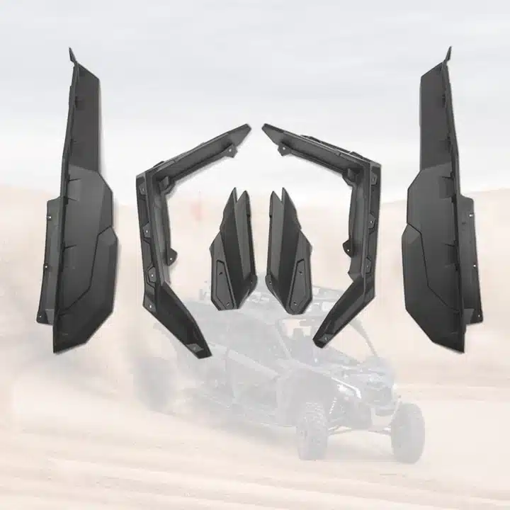 A must-great X3 body panels kit and styling in helping keep debris, sand, and muddy trails out of your cab while ripping down the trail, track, or dunes. X3 super-extended fender flares guard worth every penny. Works with aftermarket extended fender flares, too.