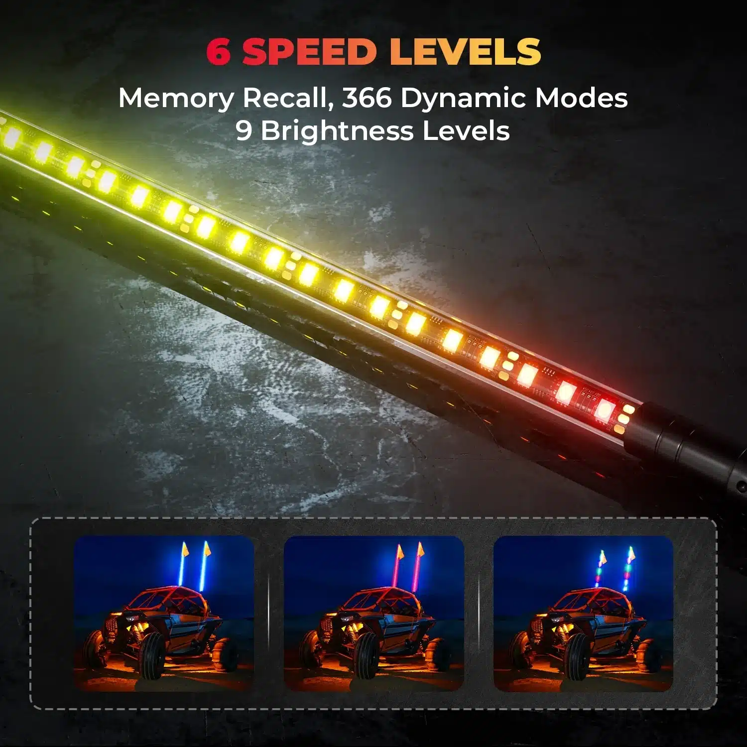LED Whip Lights Compatible With ATV/UTV/RZR (5FT & RGB – 2Pcs)